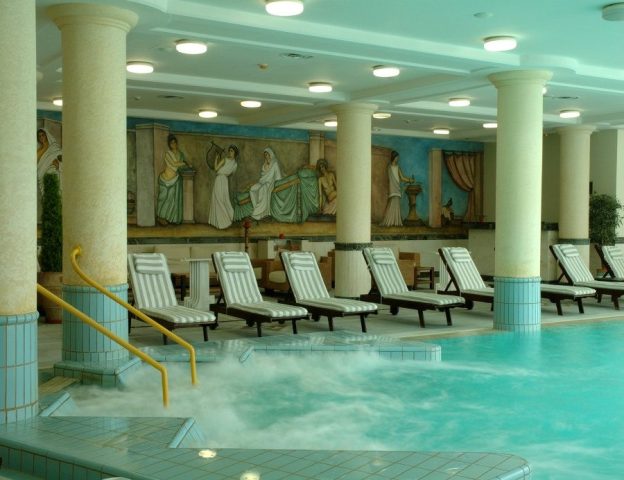 - образцовую водолечебницу площадью до 1800 кв. м. с собственным источником целебных вод, который считается одним из лучших в Греции, т.к. содержит радон;