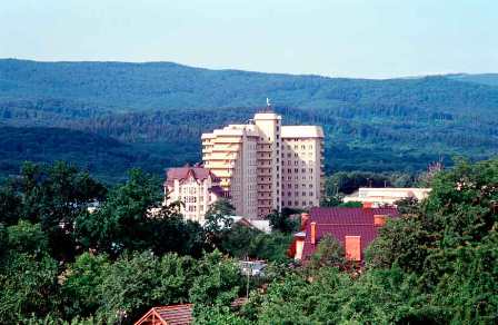 девятиэтажный спальный корпус на 500 мест, соединенный переходами с клубом, столовой, лечебным корпусом, плавательным бассейном и спортзалом. 1-2- местные номера, 2-3 комнатные люксы. Все номера с удобствами (холодная и горячая вода круглосуточно), ТВ, холодильником, ТФ, балконом.